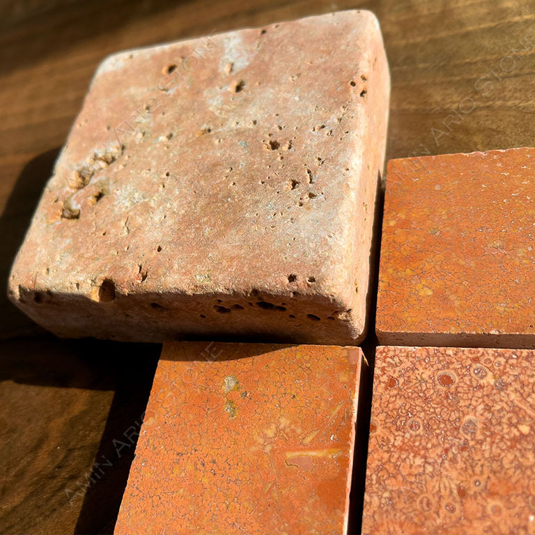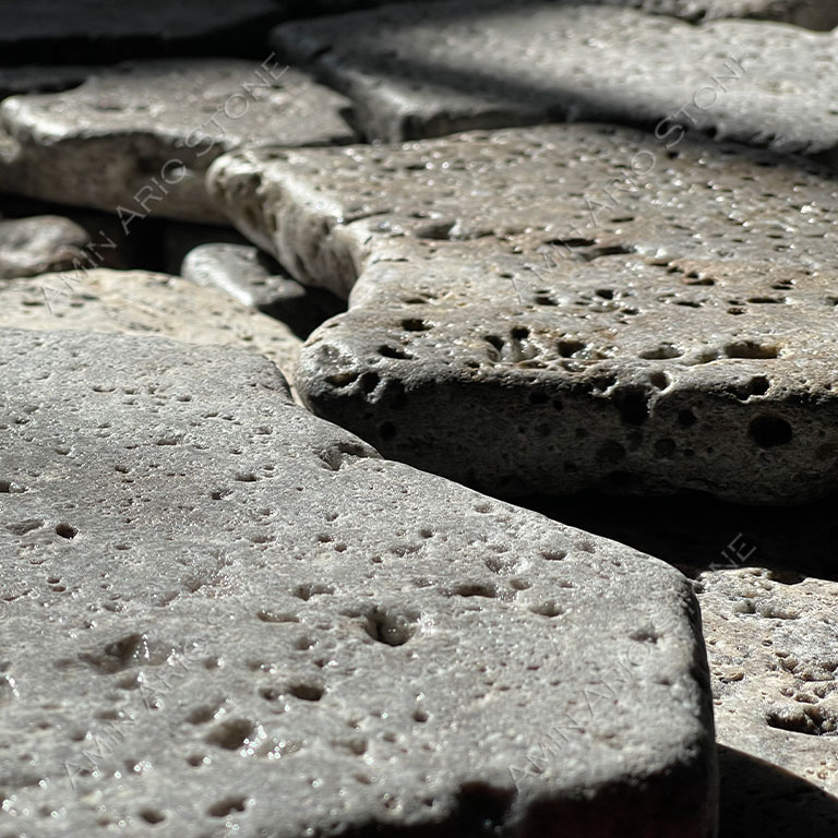We use travertine and crystal marbles for paving stones which are highly resistant and stable to different weather conditions and erosion. We offer them in various processing such as tumbled (Rustic) and leathered which give the architecture a unique look. They are available in French pattern, Crazy pattern, Roman Opus or made-to-measure tiles.