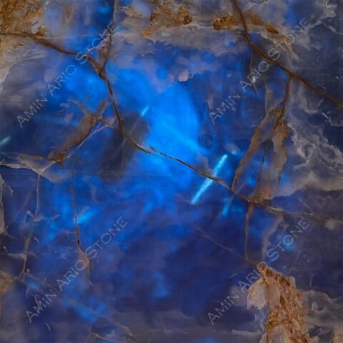 Blue Onyx is a rare and luxurious natural stone, prized for its translucent beauty and breathtaking blend of deep blues, whites, and golden veins. Each slab is a true work of art, glowing from within when backlit and offering unmatched visual impact. Ideal for statement pieces such as wall panels, countertops, and decorative features, Blue Onyx turns any space into a dramatic and elegant environment. This exotic stone is especially favored in high-end interior design for its sophistication, exclusivity, and ability to transform light into a design element.